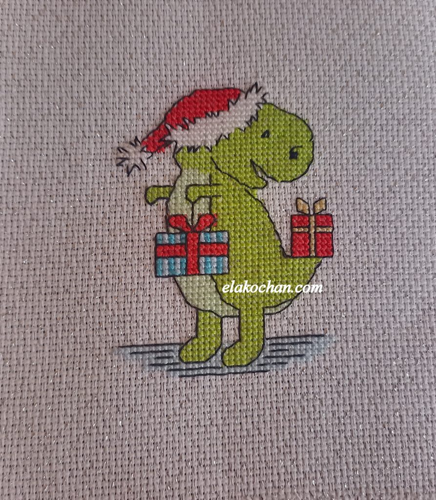 Dwa małe, zabawne tyranozaury w świątecznych klimatach. Powstały na potrzeby akcji charytatywnej. Autorką wzorów do nich jest Durene Jones.