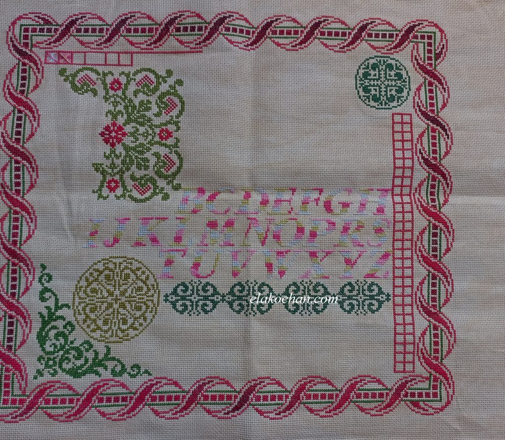 Idealnie mi to pasowało do jakiegoś samplera i któregoś wieczoru, kiedy zupełnie nie miałam chęci na haftowanie, ani żadne inne robótki, zabrałam się za tworzenie wzoru. Rysując go w programie krzyżyk po krzyżyku. Oczywiście jeszcze daleko do końca, ale musiałam już zacząć wyszywać.